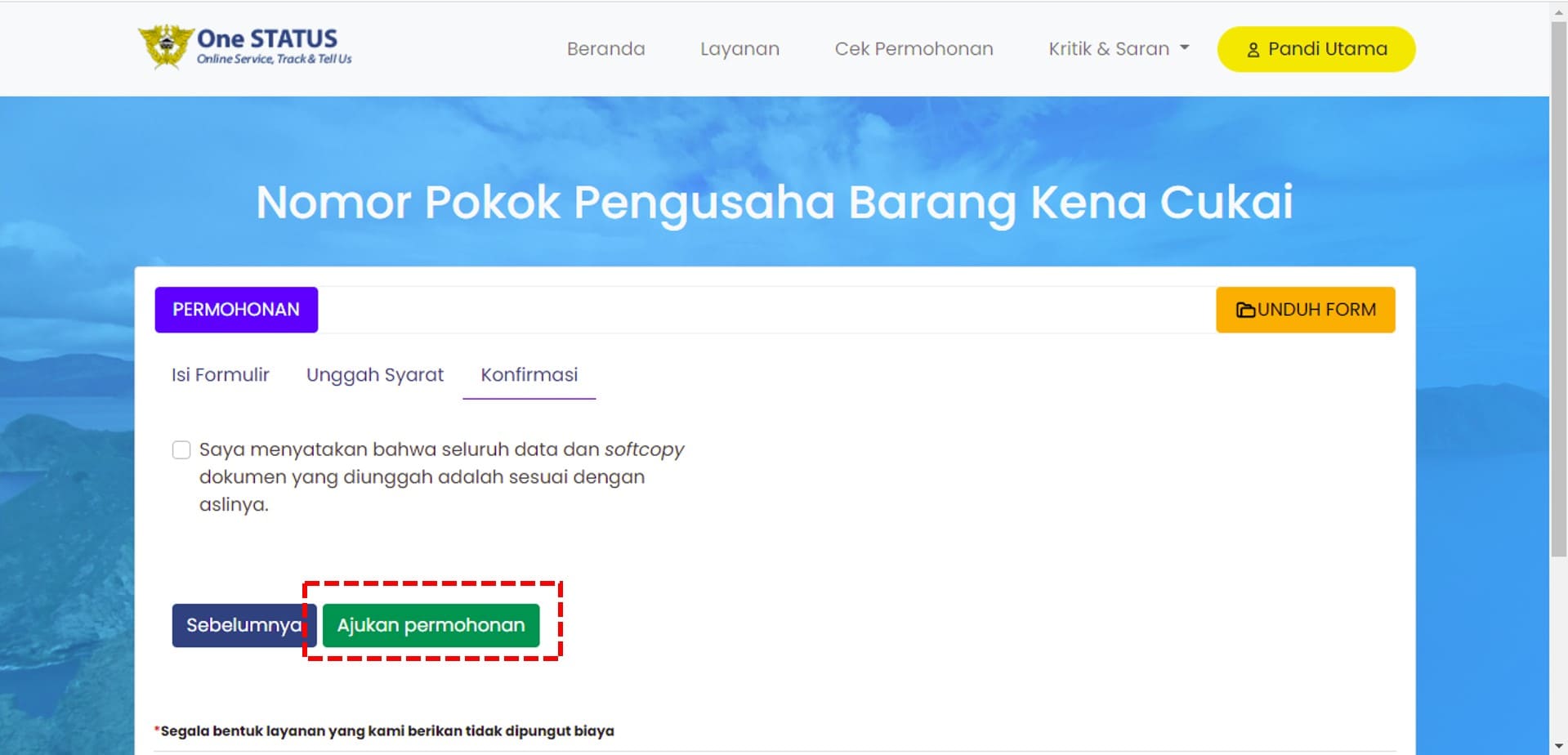 Jika Pemohon sudah yakin dengan isian permohonan, silakan tekan tombol “Ajukan Permohonan”.