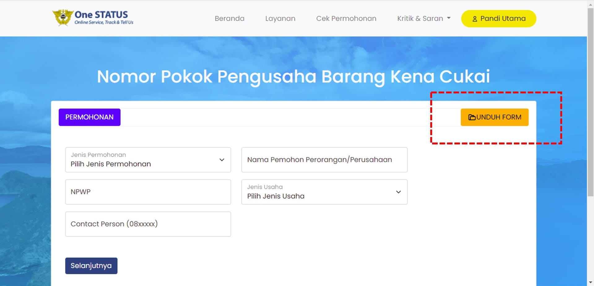 Sebelum melakukan pengisian formulir dan syarat layanan, Pemohon dapat mengunduh contoh surat atau gambar melalui tab “Unduh Form”.