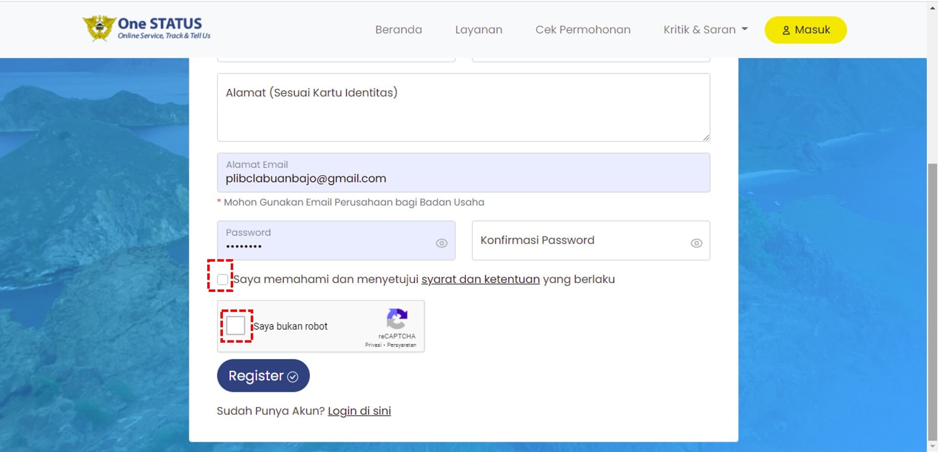 Selanjutnya, anda wajib mencentang kotak “Saya memahami dan menyetujui syarat dan ketentuan yang berlaku”.